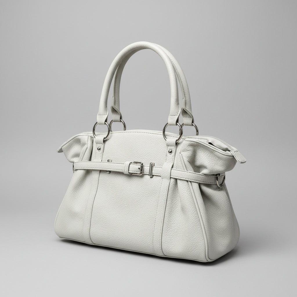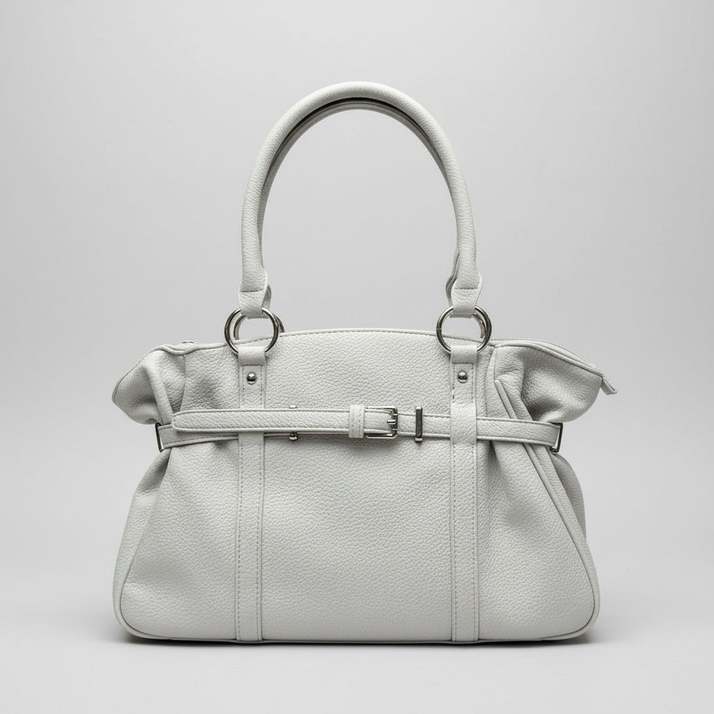 Borsa in Ecopelle Bianca con Manici Rigidi e Cintura Decorativa