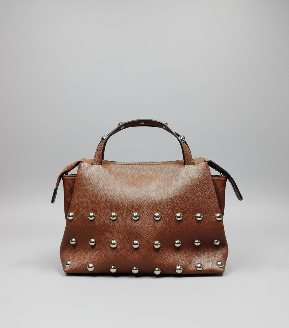 Borsa in Pelle con Borchie Metalliche | Manico Rigido