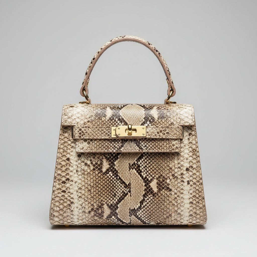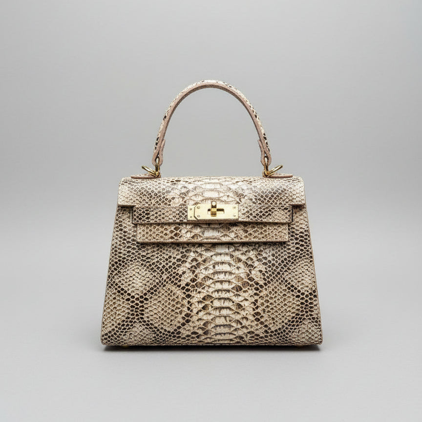 Borsa in Pelle Effetto Pitone con Manico Rigido e Chiusura Dorata