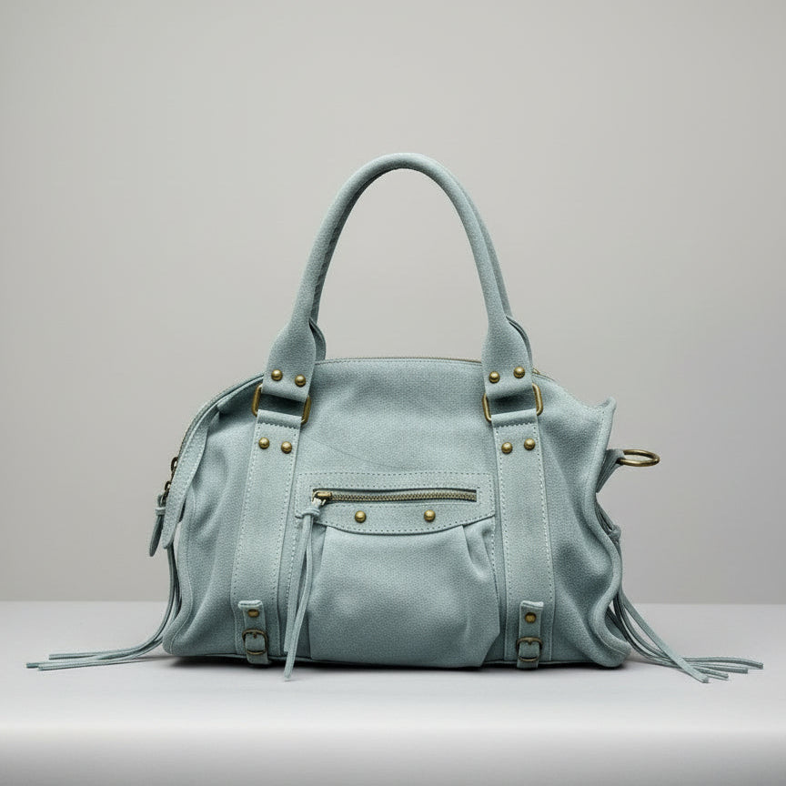 Borsa in Pelle Effetto Scamosciato con Dettagli Metallici | Azzurro