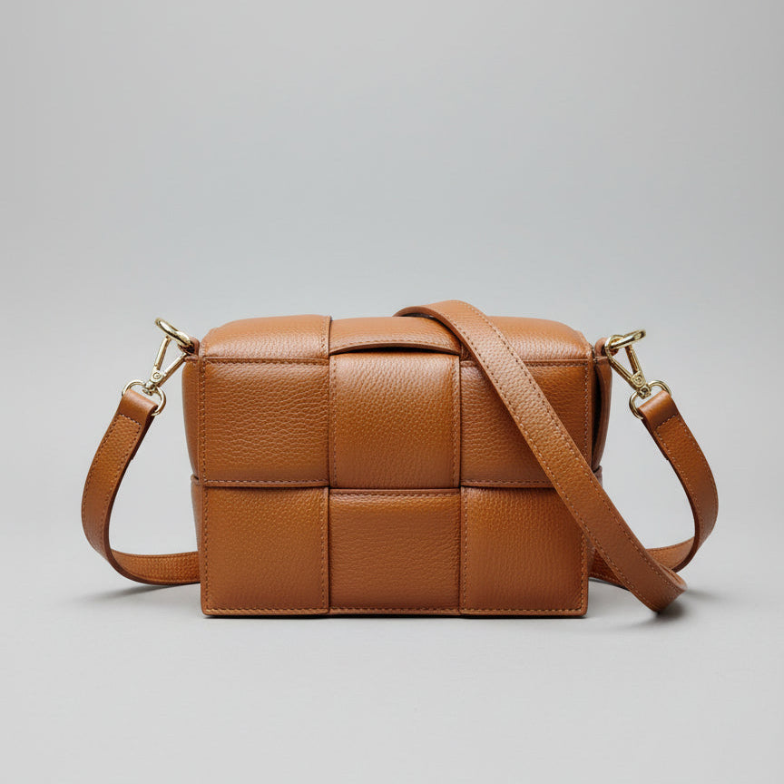 Borsa in Pelle Intrecciata con Tracolla Regolabile