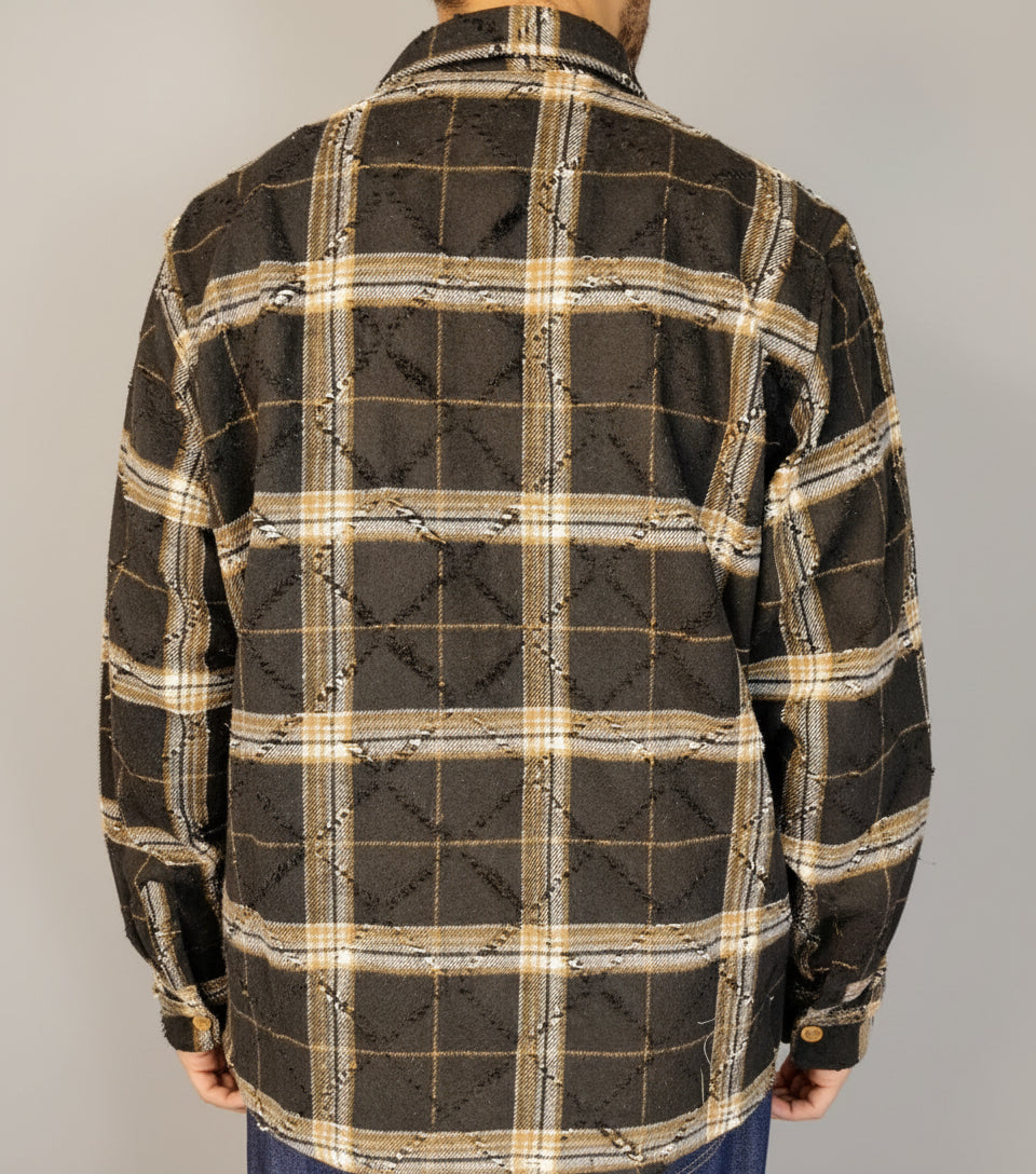 Questa Camicia/Overshirt check nera in puro cotone combina stile urban e dettagli ricercati. La lavorazione a losanghe in rilievo conferisce un aspetto strutturato e premium, mentre le spille applicate e totalmente removibili permettono di personalizzare il capo in base al tuo mood e al tuo look.