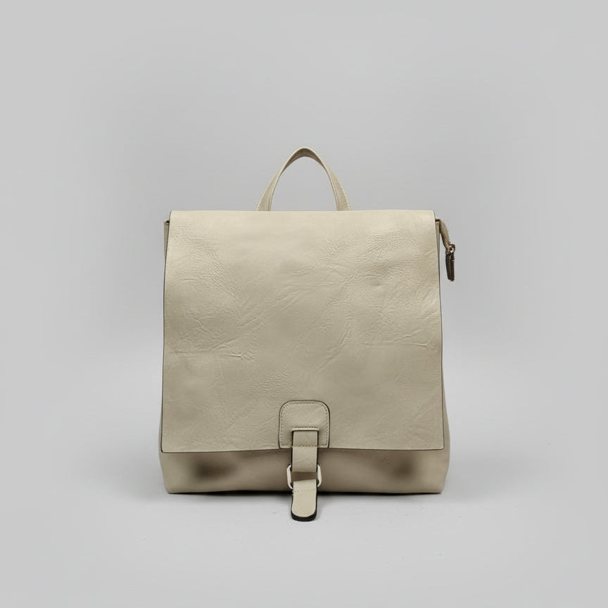 Zaino-Borsa in Ecopelle Beige 2in1 con Patta e Cinturino