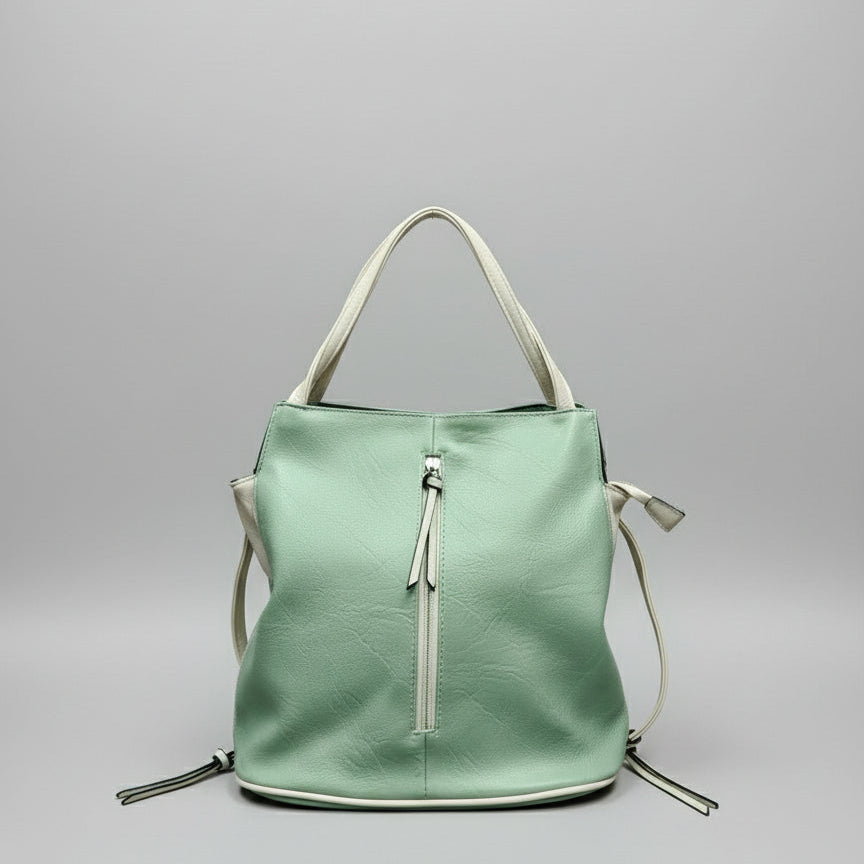 Zaino-Borsa in Ecopelle Verde Acqua 2in1 con Zip Frontale