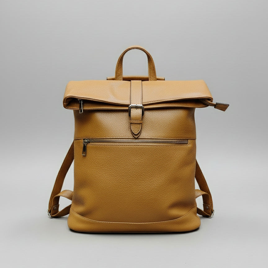 Zaino Roll Top in Ecopelle Cammello con Tasca Frontale